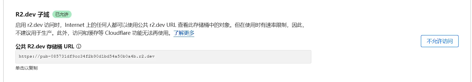 例如,我开通的R2.dev 子域是 https://pu1-082231df54234f2b90d1bd5432310a4b.r2.dev