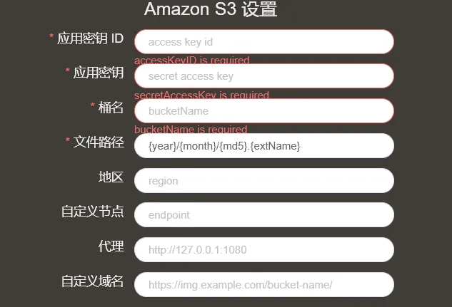 安装完成后,点击左侧-侧边栏的图床设置,里面多了一个AMAZON S3这个选项,进去设置。
