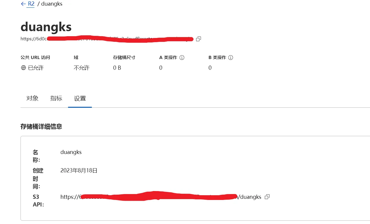 第三步是创建完存储桶后,点进就到存储桶的设置,然后找到【R2.dev 子域】,将其开启,下图是我已经开启的状态。