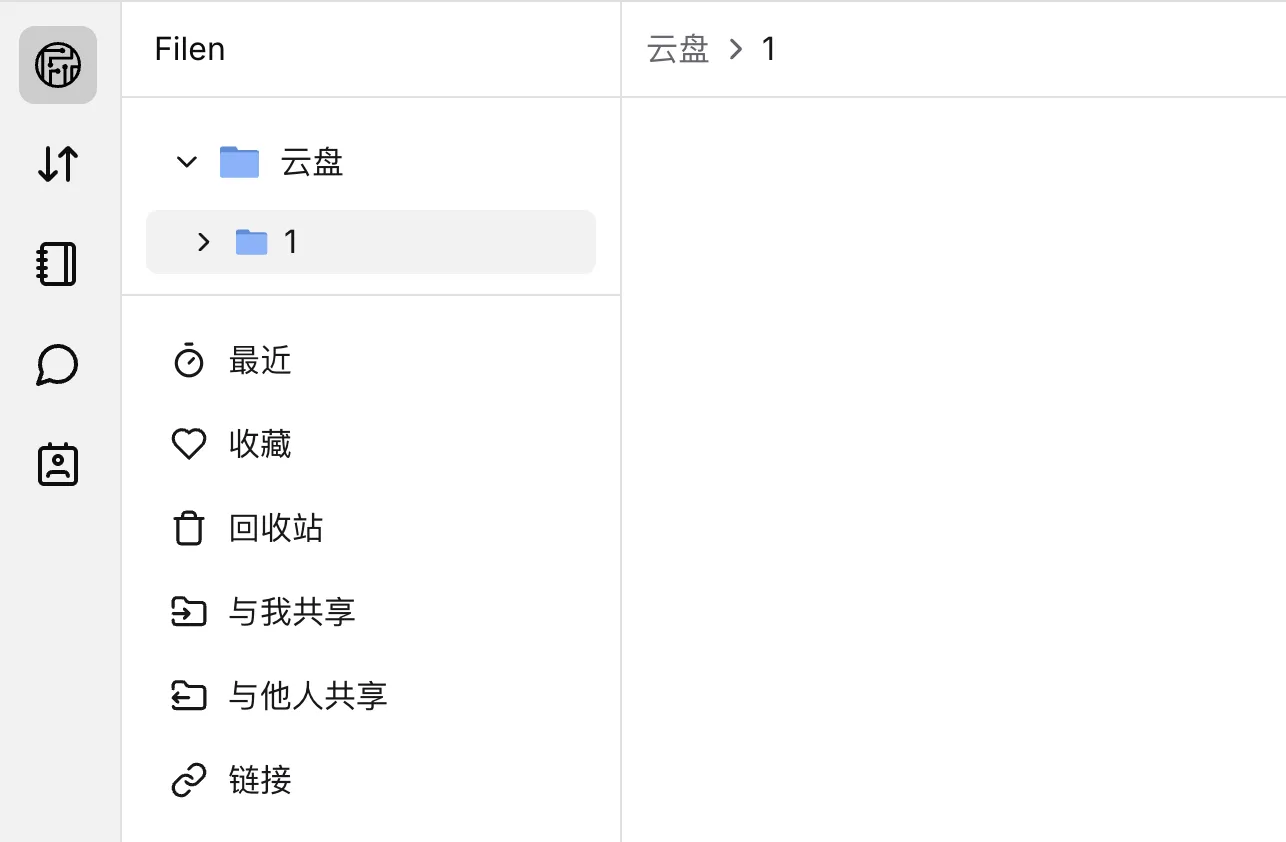 web端和windows/mac端都是类似的界面,在左侧侧边栏那里有主要功能,第一个是云盘,第二个是传输(也就是正在上传和下载的任务),第三个是笔记(好多云盘软件都有笔记,filen支持富文本或者markdown好评).第四个和第五个是联系人和聊天.这真的很邪门.一个以加密为卖点的云盘竟然在主界面整上了聊天和联系人