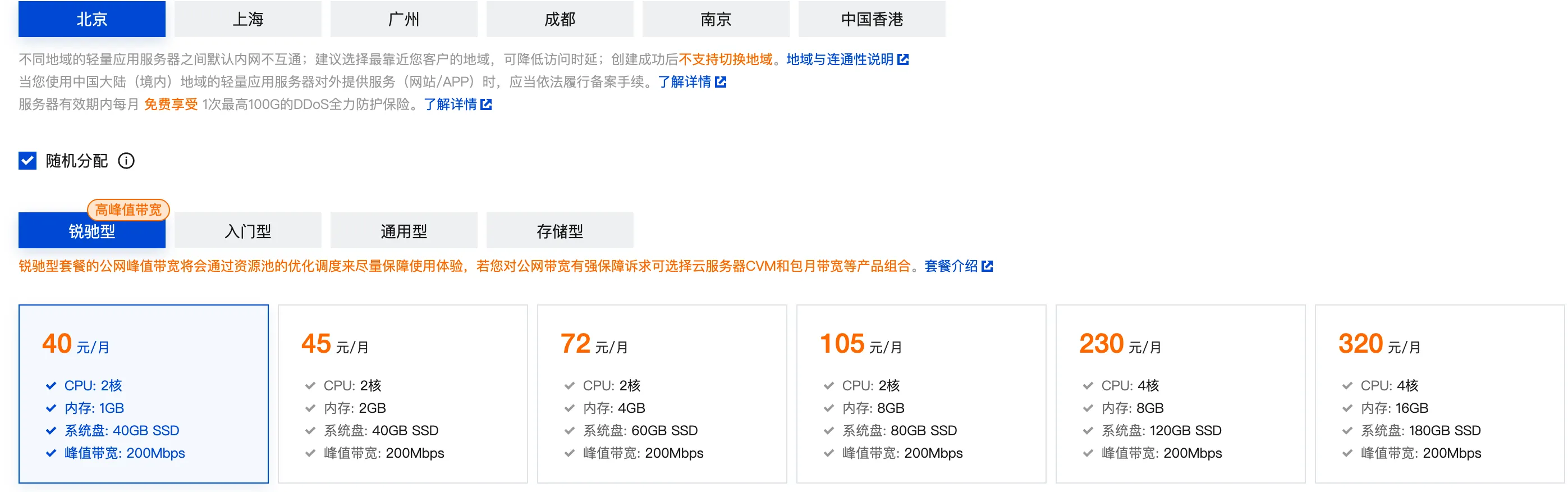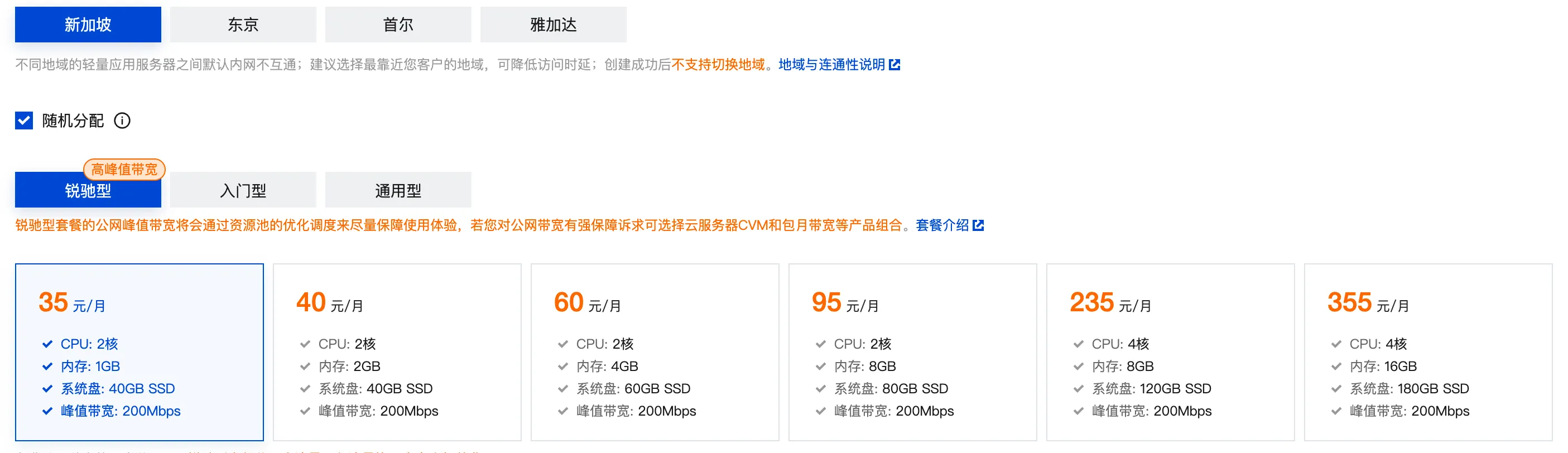 腾讯云出了锐驰机型,也就是以前的轻量服务器的一个变种.标称是200兆不限流量,腾讯出200兆不限流量机型是在阿里云之后出的,不过阿里云现在的轻量机型开始限量了,基本跑个十几G就限速10兆,还不如原本的轻量了,腾讯这个限量放的宽一些,不过腾讯这个机器香港的最好,但是香港的低端机型已经全部断货了,最低的剩下280元一个月的,太贵了没必要.