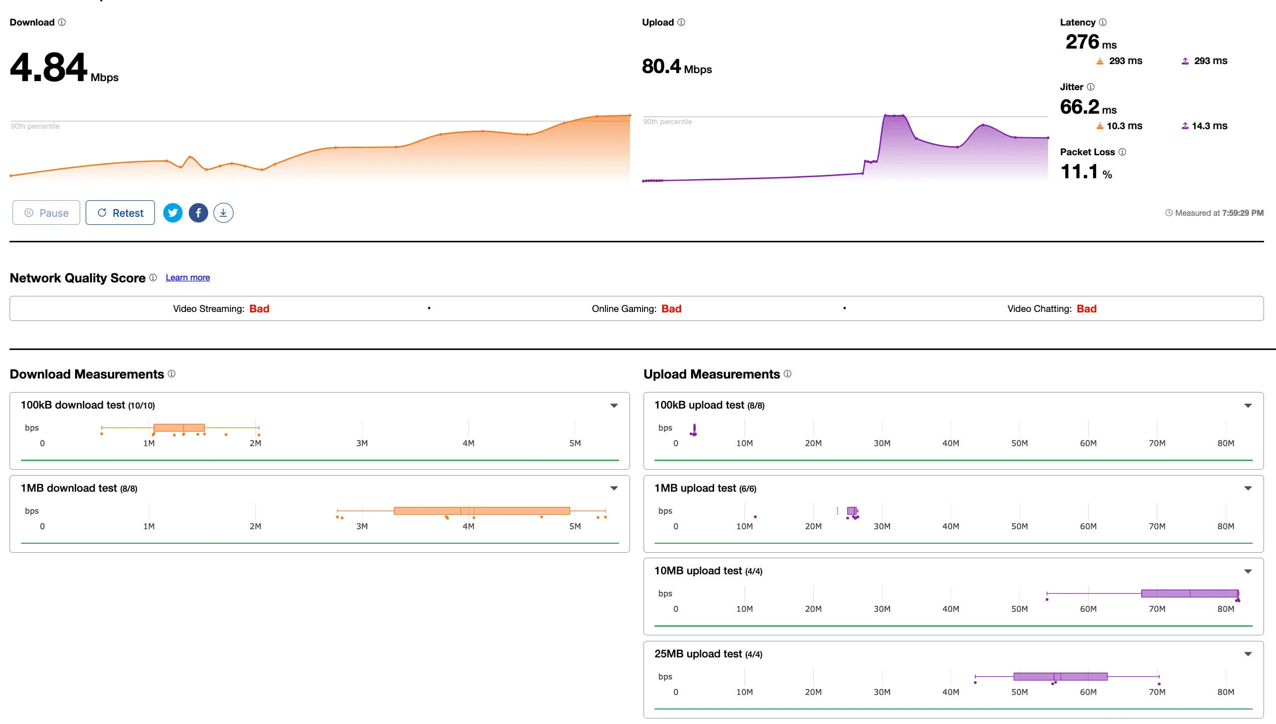 下面可能是商宽测速,不一定准,后面我用家宽试试.