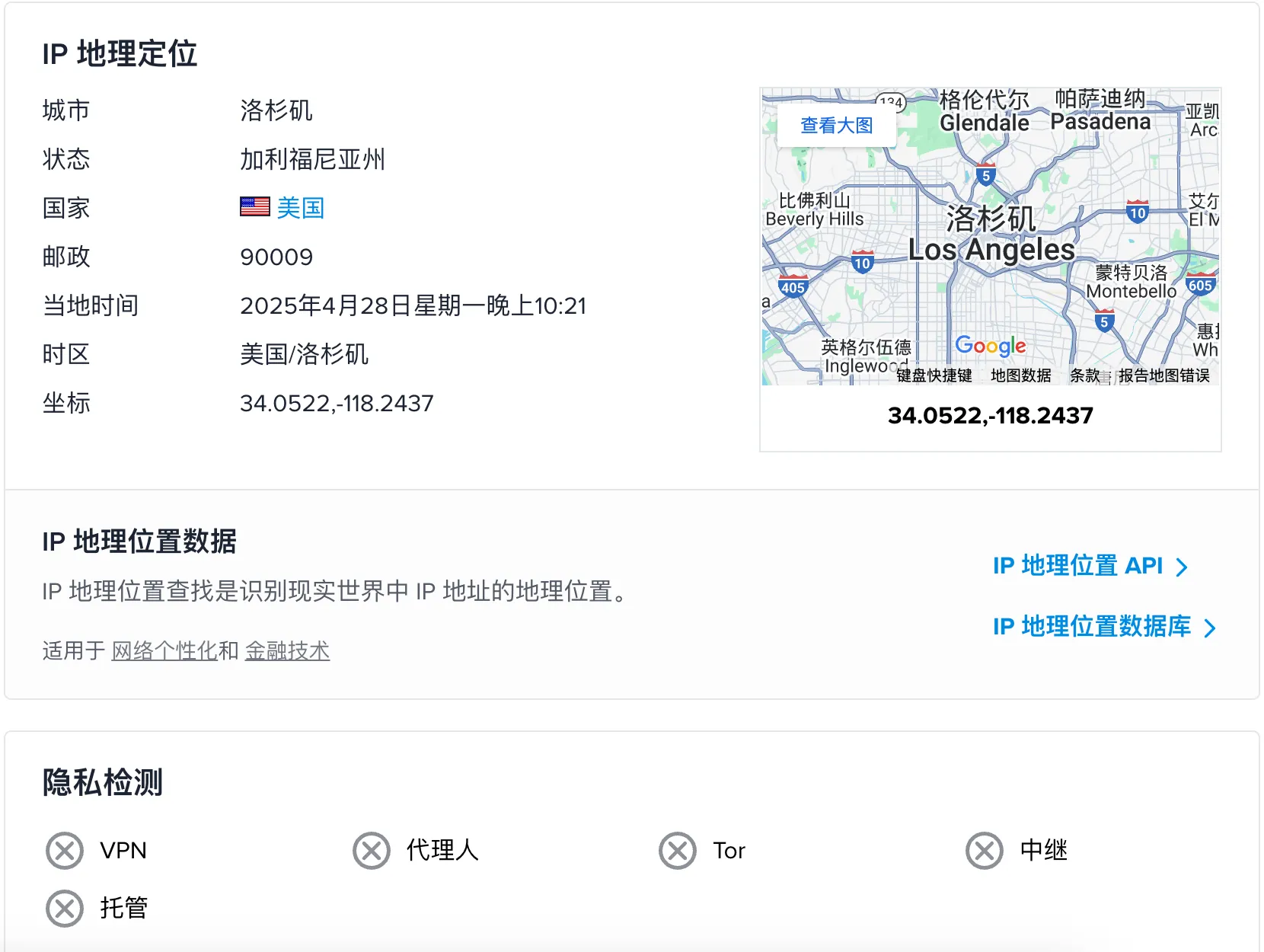 IPV4 Location : Los Angeles / California / United States