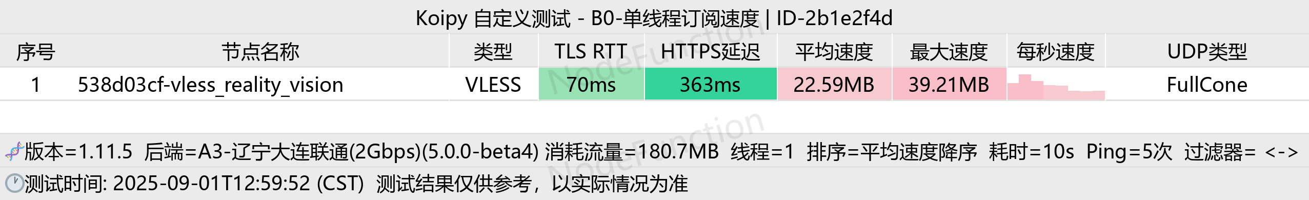 协议使用常见的reality协议.目前这个时间还不是晚高峰,等晚高峰我再在视频里面测测看.日本的机器晚高峰掉速应该会挺厉害的.不同的移动宽带速度不一定相同,不过我都是尽量使用单线程测速了.